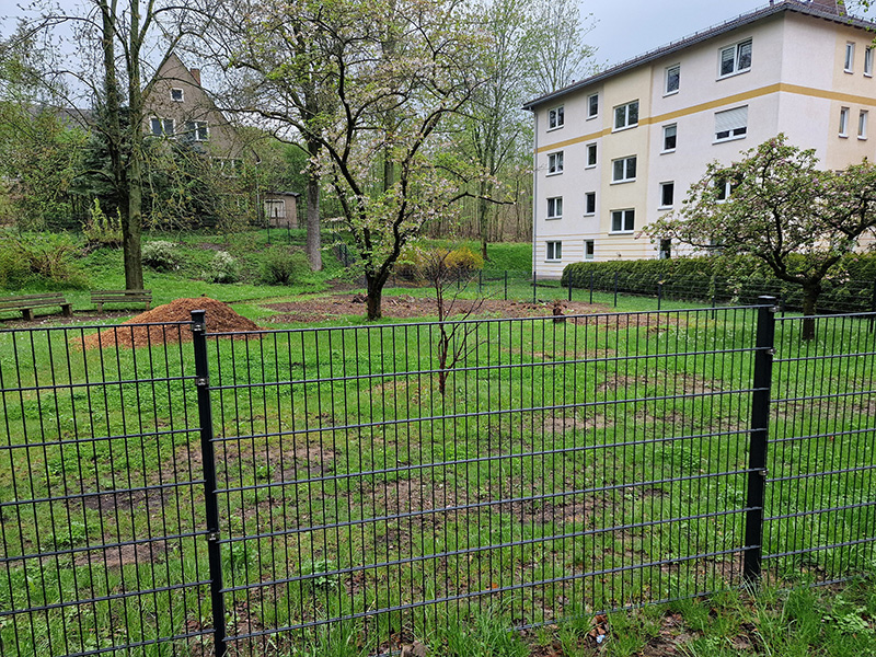 Auf dem Gelände gegenüber der Grundschule entsteht derzeit ein neuer Schulhof. Grund für die Maßnahme ist die fortschreitende Instabilität des bisherigen Schulhofs, der besonders bei Starkregen zunehmend abrutscht und somit die Sicherheit der Schülerinnen und Schüler gefährdet. Die neue Fläche befindet sich in der angrenzenden Parkanlage, die künftig in die Verwaltung des Schulamtes übergeht. Aus diesem Grund wird das Areal auch eingezäunt.