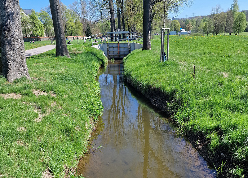 Auch rund um das Wasserschloss gibt es Fortschritte: Der Mühlgraben wurde vom Wehr an der Würschnitz bis zum Golfplatz entschlammt. Dadurch kann das Wasser nun wieder besser in den Schlossgraben fließen - ein wichtiger Beitrag für das historische Ambiente und das ökologische Gleichgewicht in der Umgebung.