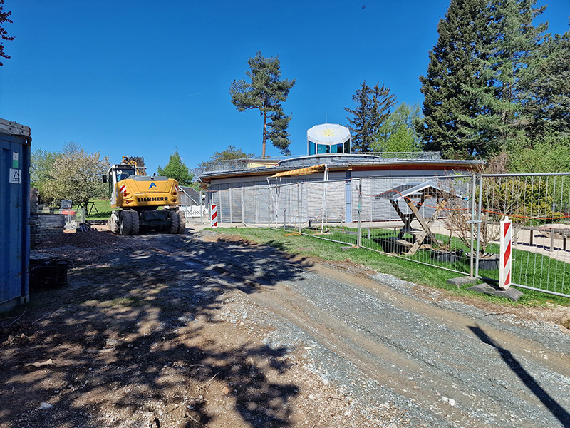Auf dem Gelände gegenüber der Grundschule entsteht derzeit ein neuer Schulhof. Grund für die Maßnahme ist die fortschreitende Instabilität des bisherigen Schulhofs, der besonders bei Starkregen zunehmend abrutscht und somit die Sicherheit der Schülerinnen und Schüler gefährdet. Die neue Fläche befindet sich in der angrenzenden Parkanlage, die künftig in die Verwaltung des Schulamtes übergeht. Aus diesem Grund wird das Areal auch eingezäunt.
