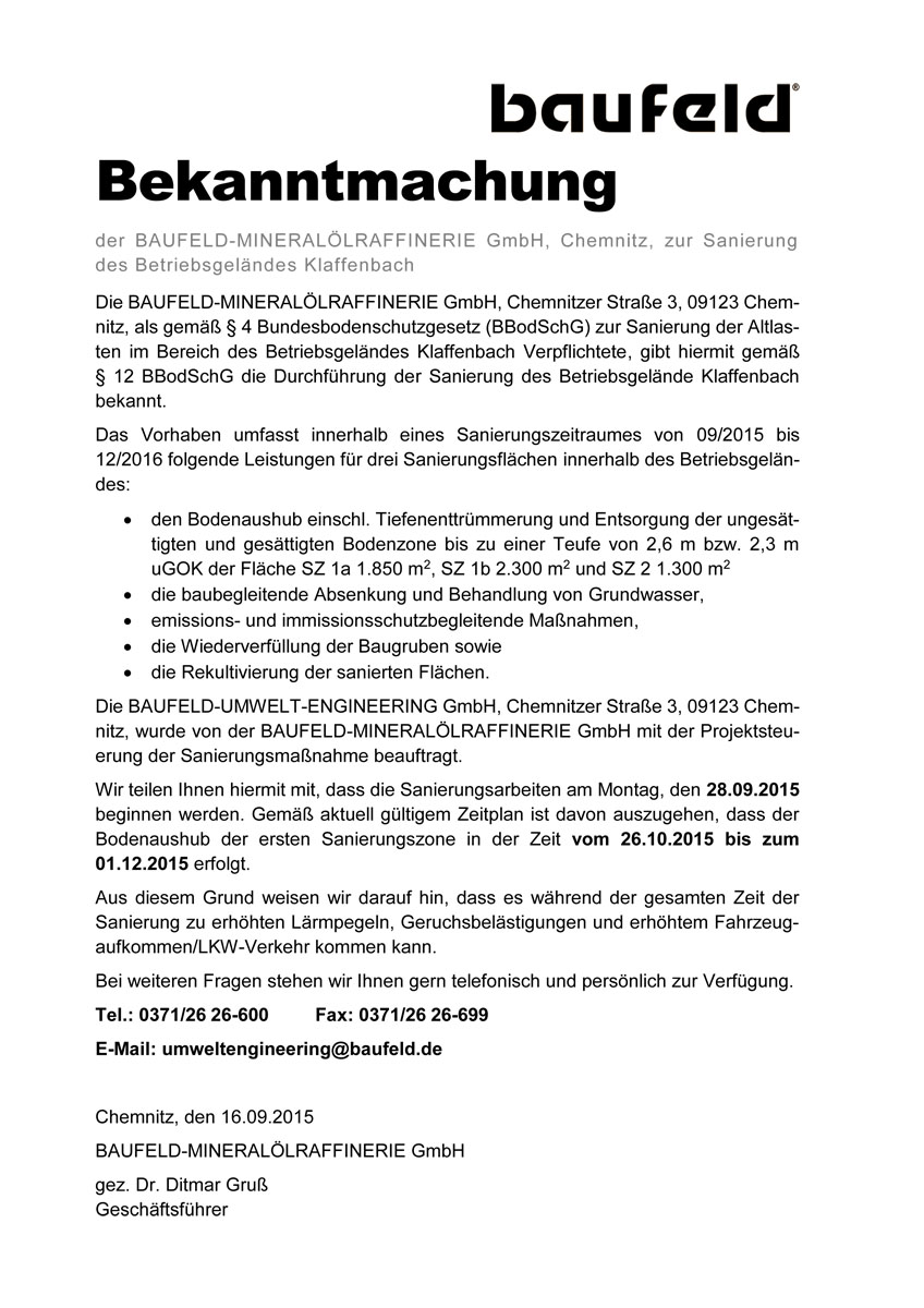 • Bekanntmachung BAUFELD Sanierung