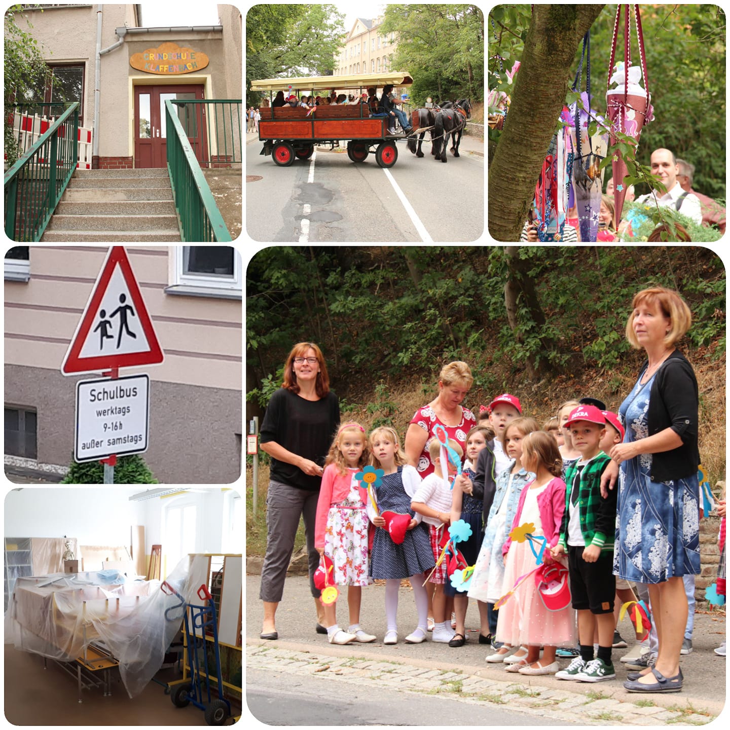 Für 19 ABC Schützen hieß es heute in Klaffenbach wieder - JUHU - wir kommen in die Schule. Traditionell ging es mit der Pferdekutsche vom Wasserschloß Klaffenbach hoch zum Zuckertütenbaum an der Grundschule. Ab Montag heißt es dann rechnen, schreiben und lesen lernen für die Schulanfänger. Doch nicht in unserer Grundschule, sondern im Nachbarort wird der erste Unterricht stattfinden. Die Schülerinnen und Schüler der Grundschule Klaffenbach werden für 1 Jahr in die GS nach Einsiedel gehen. In der Zwischenzeit sollen die Bauarbeiten an unserer Schule umfangreich fortgeführt werden.