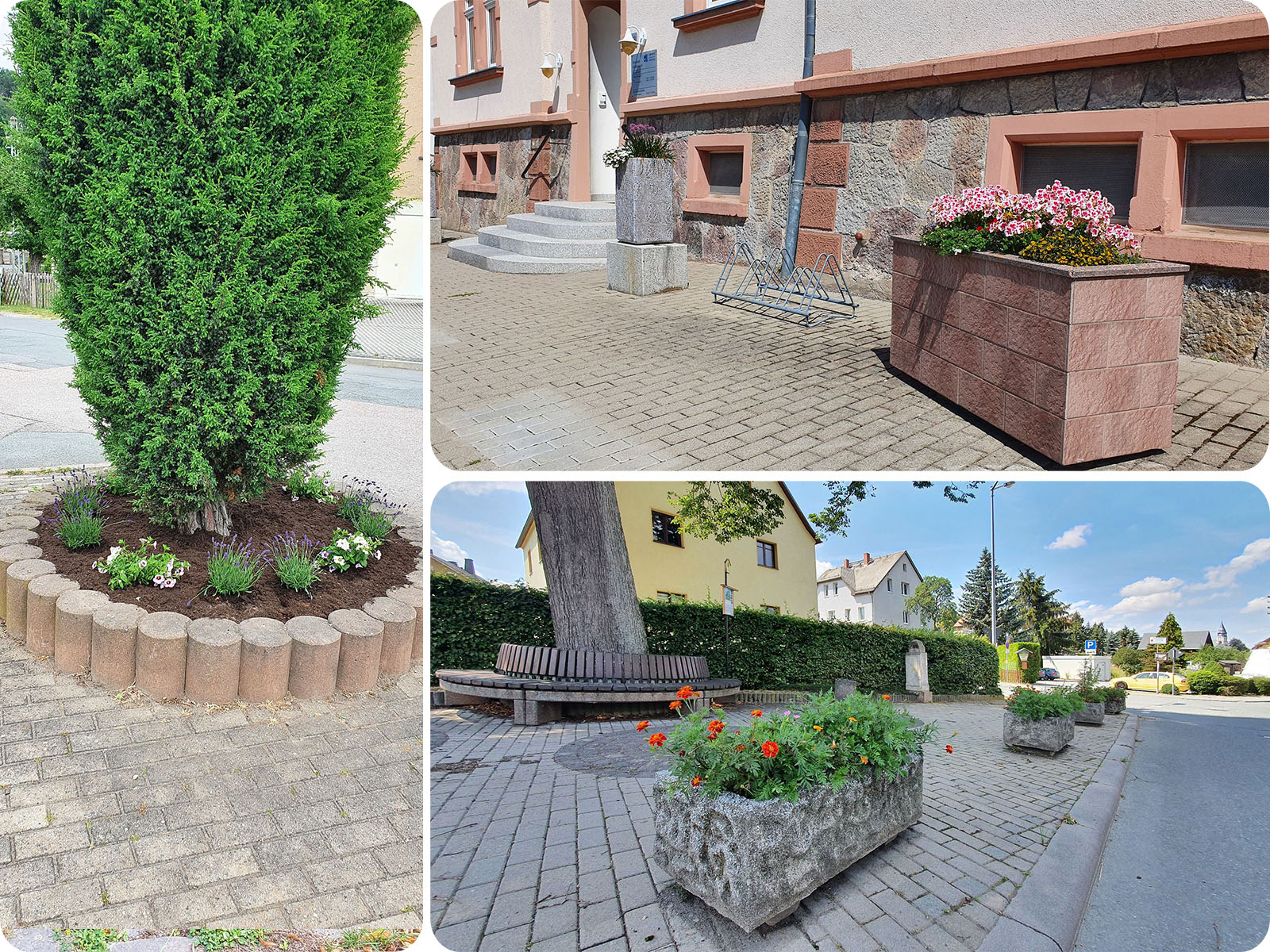 - Grünpflege Fichte am Rathaus und Sträucher Parkanlage Schule