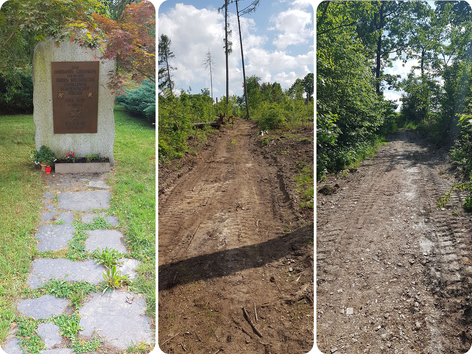 Im Rödelwald hat leider der Borkenkäfer stark die Bäume befallen. Im Dezember und Januar wurden aus diesem Grund zahlreiche Bäume gefällt. Jetzt sieht es aus, wie auf einer Mondlandschaft. Auch die Wanderwege wurden durch die Großtechnik stark in Mitleidenschaft gezogen. Wir bleiben aber dran, dass diese im Frühjahr wieder ordnungsgemäß hergestellt werden.