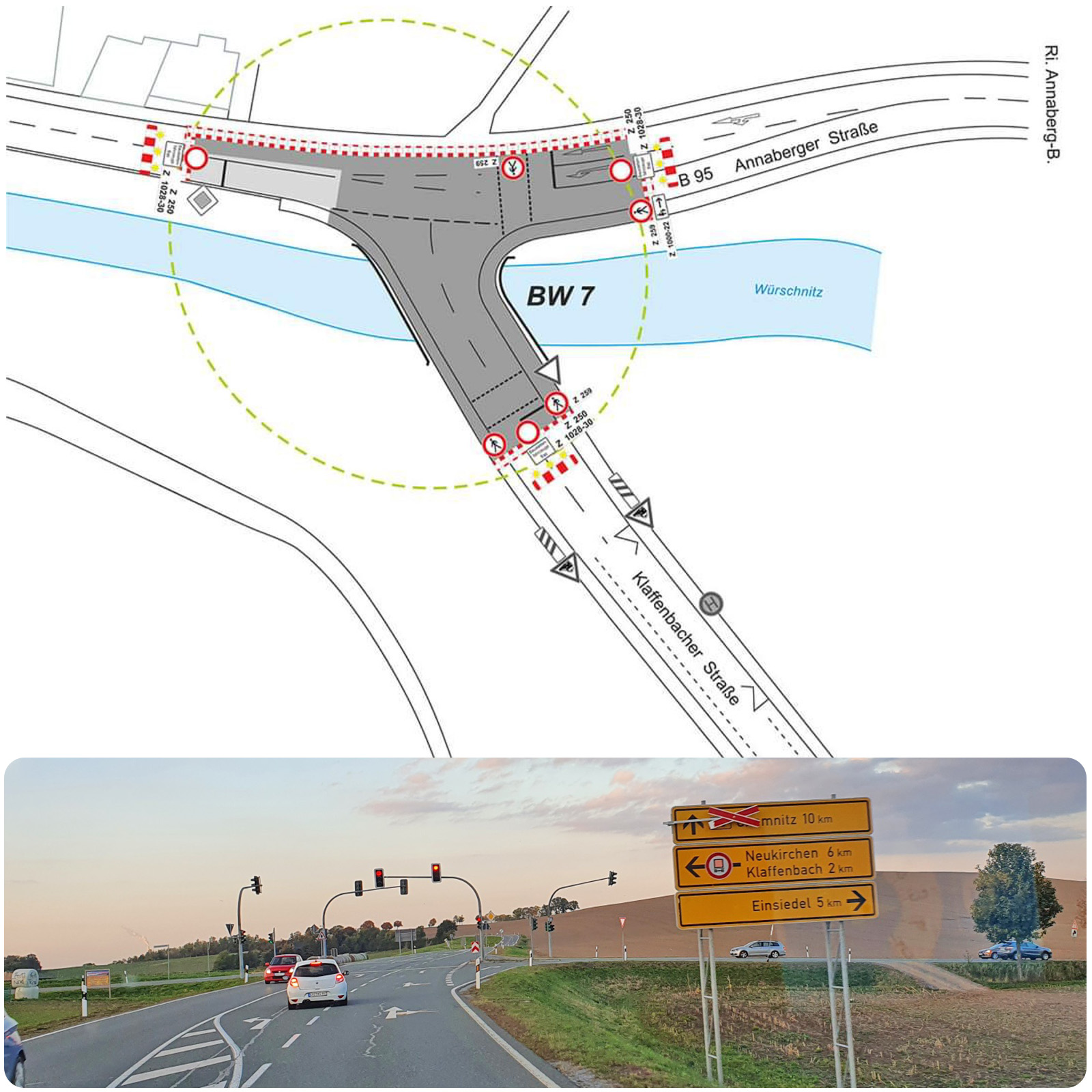 Aufgrund des Brückenneubaus über die Würschnitz in Harthau kommt es bis zum 18. November erneut zur Vollsperrung im Bereich B95 Abzweig Klaffenbacher Straße. Die Umleitung für den PKW Verkehr erfolgt über Klaffenbach - Chemnitzer Straße - Wolgograder Allee - Südring. Für LKW gilt eine Umleitung bereits ab Thum über Herold, die B174 und den Südring.
