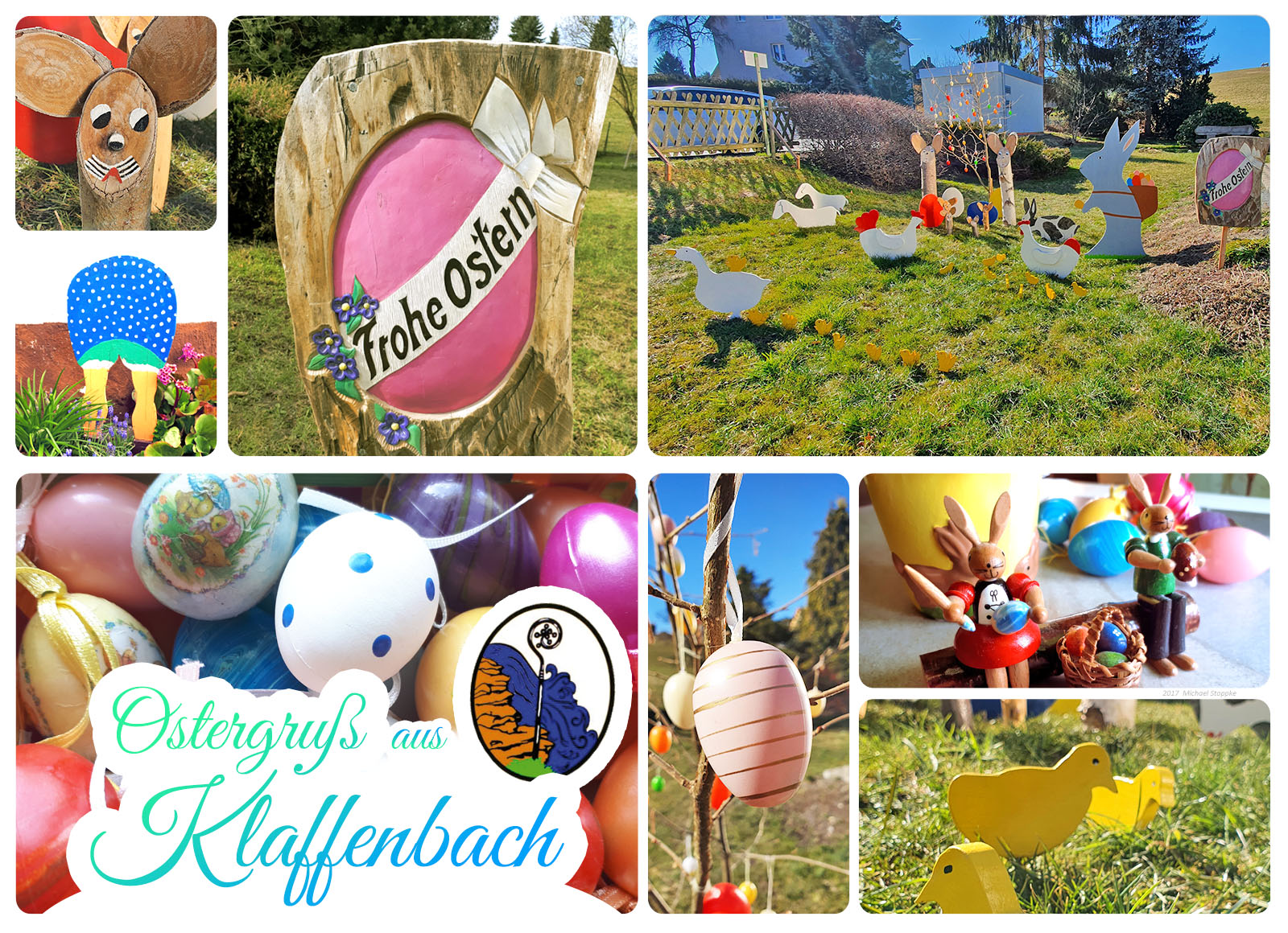 Das Festkomitee Klaffenbach wünscht allen Bürgerinnen und Bürgern ein schönes Osterfest und ein paar ruhige, besinnliche Feiertage. Hannes, hab recht herzlichen Dank für deine, wieder einmal sehr schöne Osterdekoration neben dem Rathaus. Seit Jahren kümmerst du dich liebevoll darum. Sieht man deinen Ostergruß an der Pyramide stehen, weiß man der Winter ist vorbei und Frühling kann kommen. Auch dieses Jahr hast du deine Deko wieder um ein paar Kleinigkeiten erweitern können. Vielen Dank dafür.